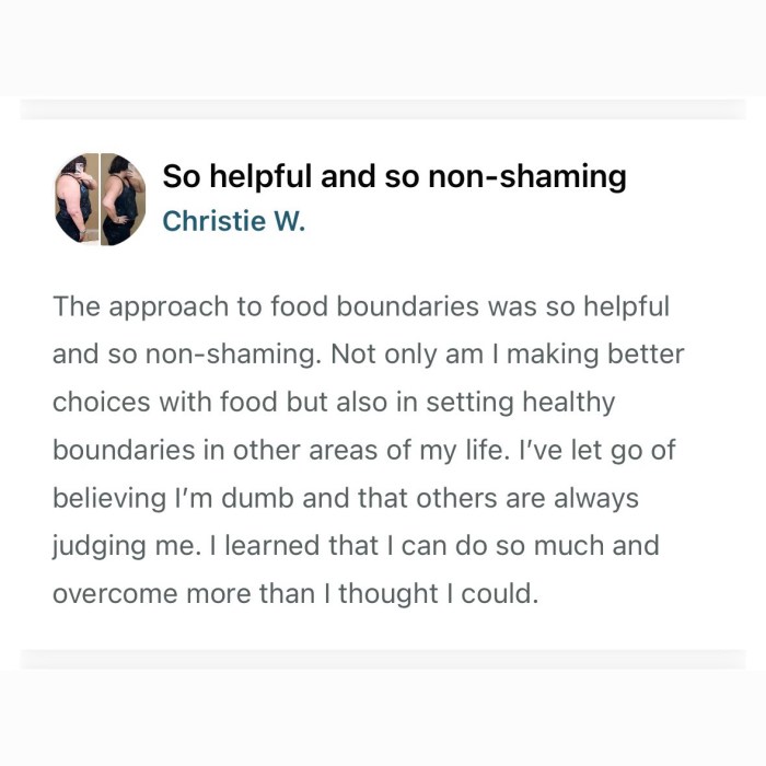 YOU CAN BREAK OUT OF SELF-PUNISHMENT, RESTRICTION, AND SELF-SABOTAGE THROUGH REWIRING YOUR BELIEFS ABOUT FOOD, WEIGHT, AND BODY IMAGE.